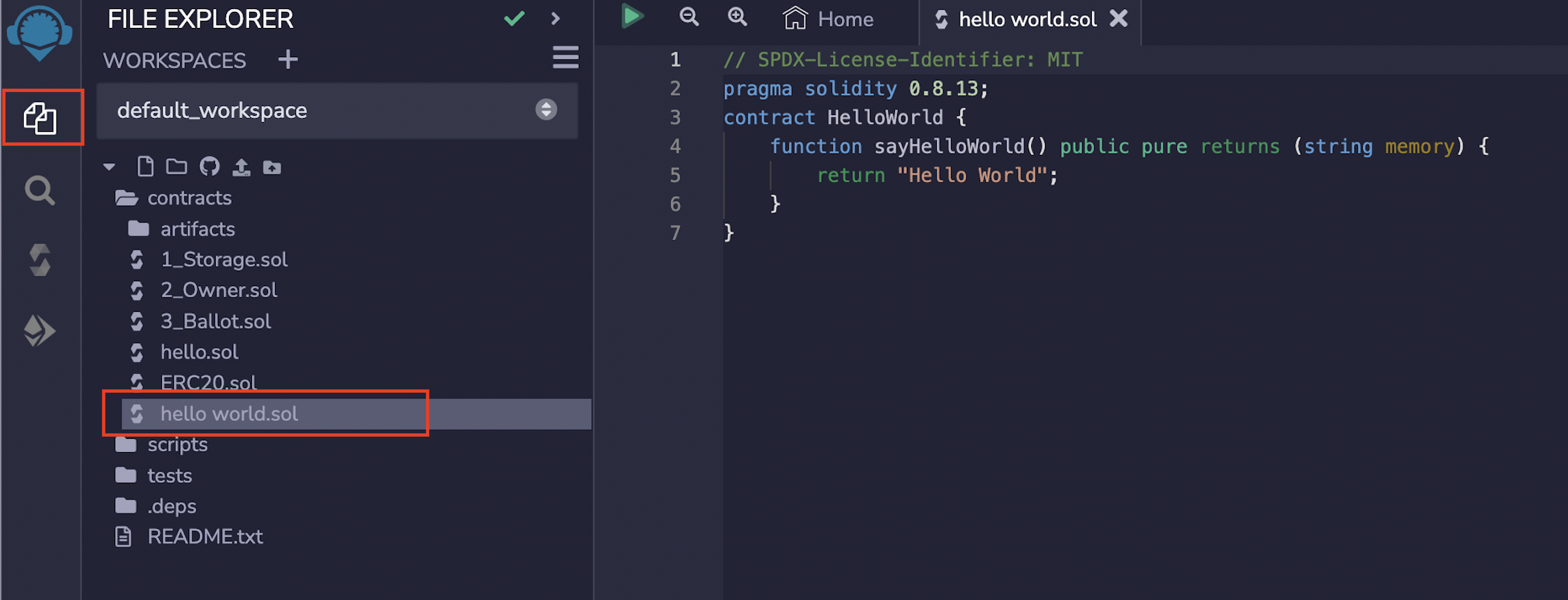 Load or create the smart contracts that we want to compile and deploy using Remix file explorer.